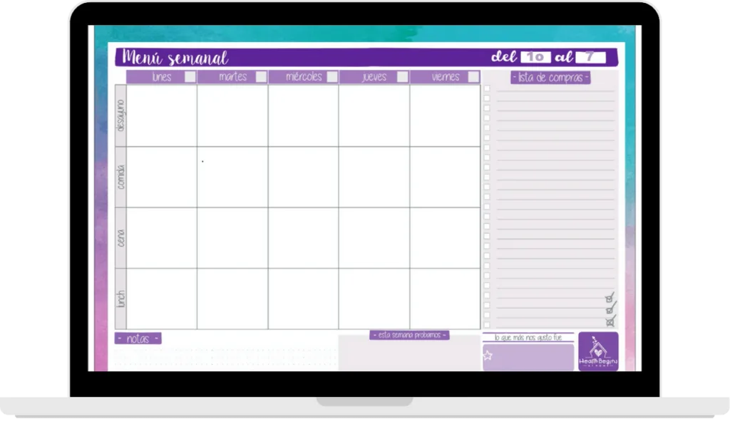 • Planner de menú semanal: Herramientas para planificar comidas equilibradas, reduciendo el estrés de las comidas de última hora.